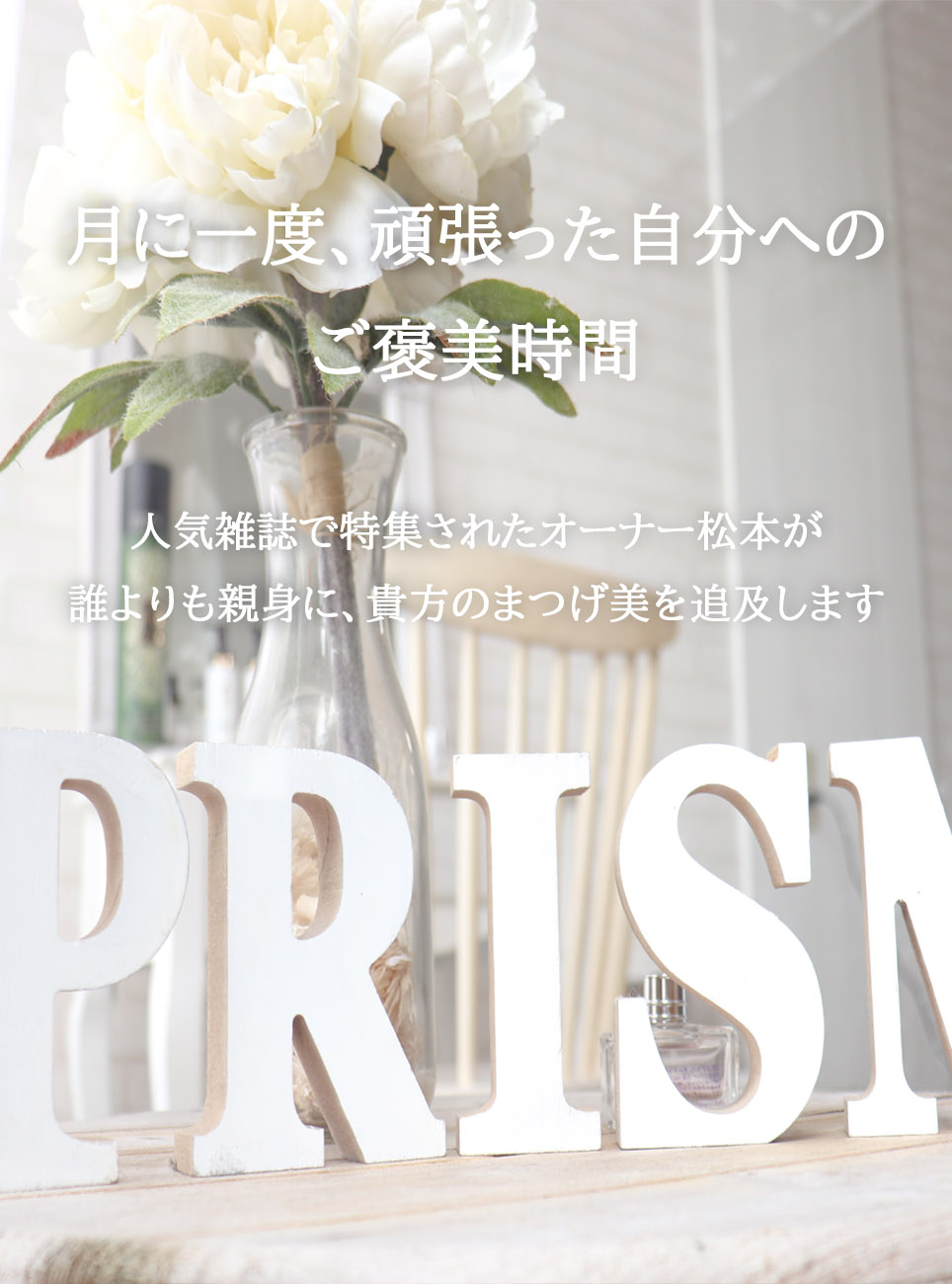 まつ毛の施術、フェイシャル、松本さんの愛が溢れるカウンセリング、魅力溢れるPRISMさんに是非一度行ってみてほしいです!